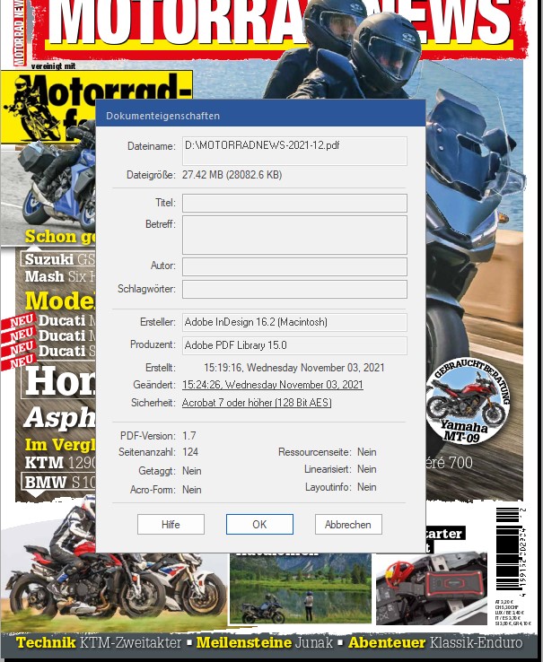- Thema: Menü "Datei -Eigenschaften" -> Absturz