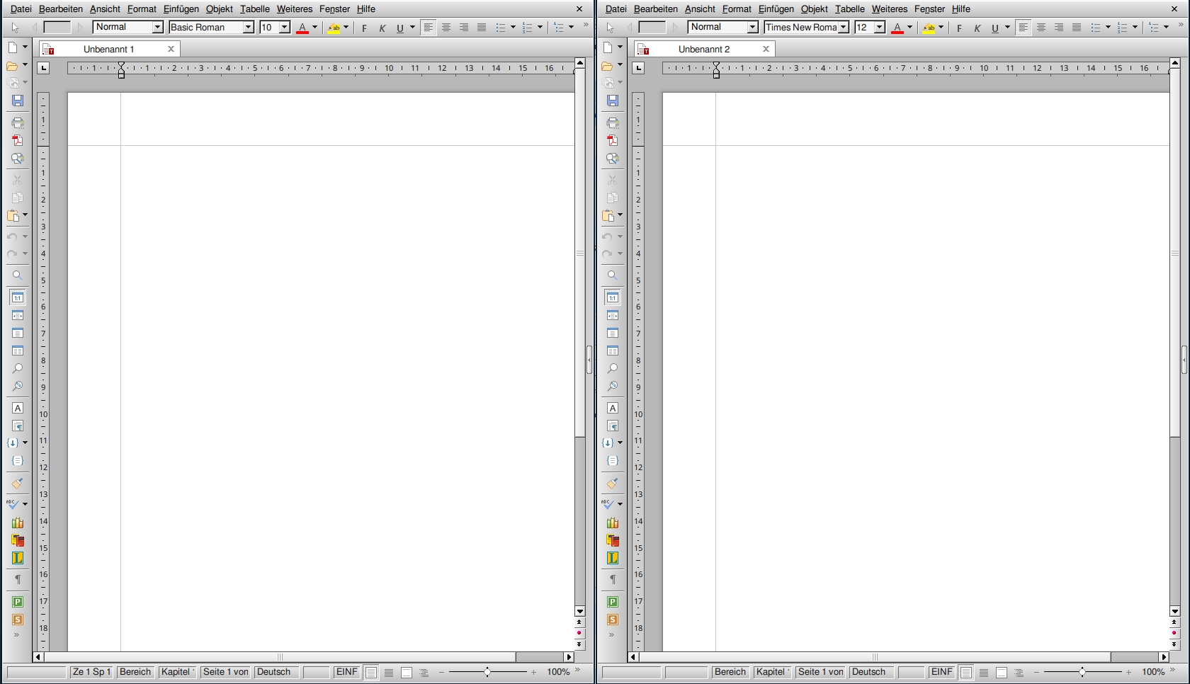 martin-k hat geschrieben:Die werden wir nachliefern, und zwar in der Form, dass man auf Knopdruck zwei Dokumentfenster nebeneinander sehen kann. Dazu werden das aktive und ein anderes Dokument als separate Fenster nebeneinander auf dem Desktop platziert.