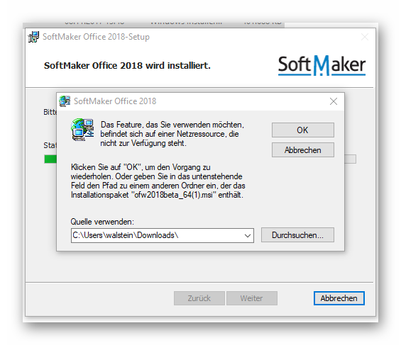 ich habe beim Betatest Softmaker Offce 2018 teilgenommen. Nun habe ich SoftMaker Office 2018 erworben und versucht - nach dem Löschen der Betaversion die Kaufversion Office 2018 zu installieren. Leider klappt es nicht.