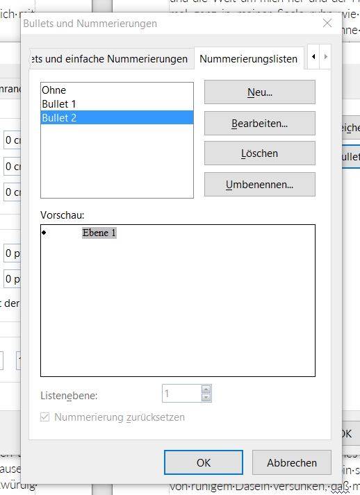 Wenn ich Dokumente, die mit meinen Absatzvormatvorlagen erstellt habe, als *.docx speichere, dann wird die Vorlage Text Bullet beim Speichern zerschossen und die gewollte Formatierung ist weg.