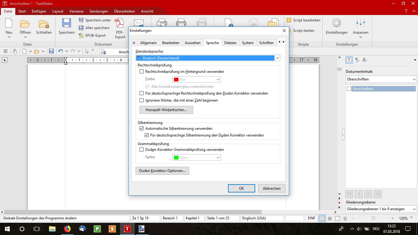 Wenn man am Fuß deines Dokument, in der Statusleiste, schaut, ist deine Dokumentensprache auf Englisch US eingestellt (nicht die Rechtschreibung).