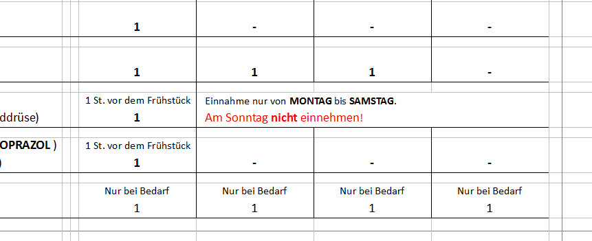 Ich habe bei meiner Tabelle die Formatierungen in, und die entsprechende Zelle selbst gelöscht und nochmals erstellt. Selbes Ergebnis wieder, sobald ich in der zweiten Zeile das Wort "nicht" auf Fett setze. Nach speichern und erneutem öffnen sieht es jetzt so aus: