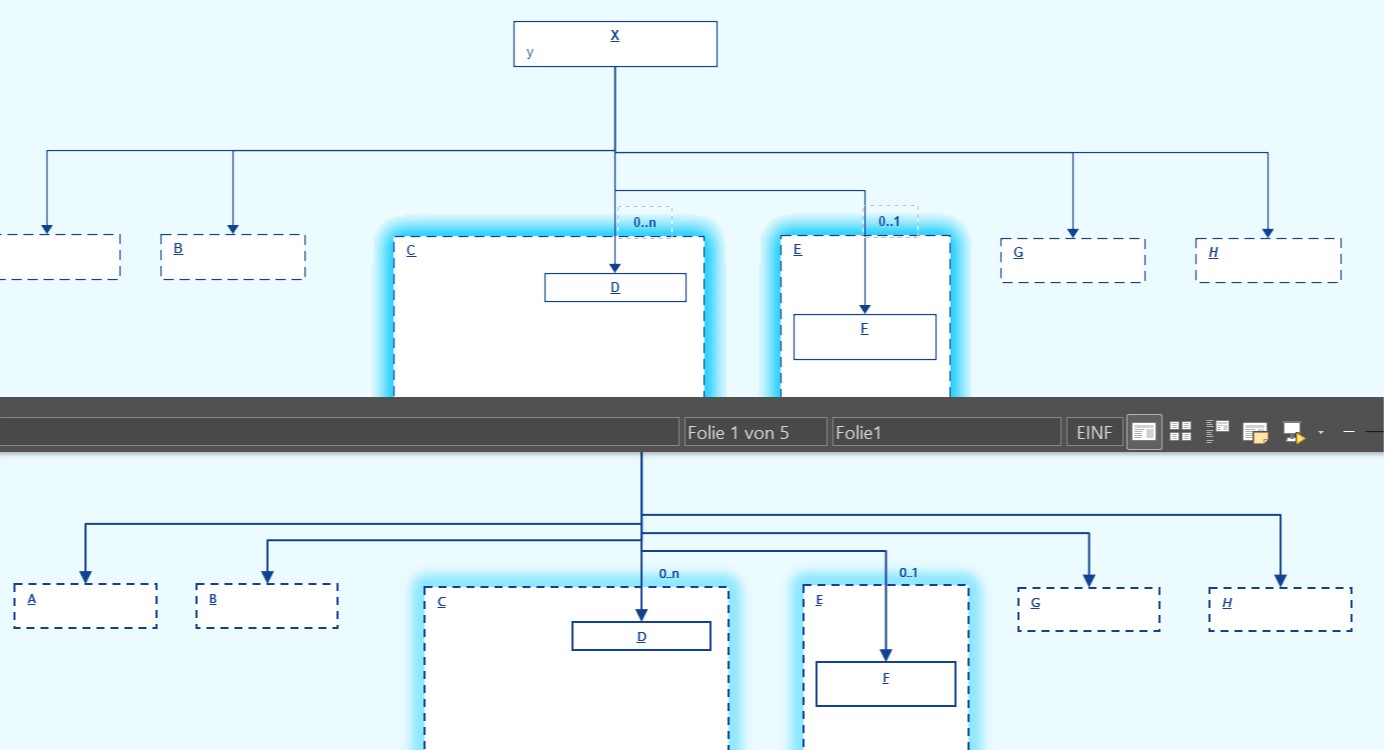 Mit der aktuellen Nightly sind 1 und 4 erledigt, 2 und 3 stehen noch an zur RevisionThomas Wolff hat geschrieben: 15.02.2019 16:07:01 Vertikal versetzte Verbindungslinien (slide 1): OK