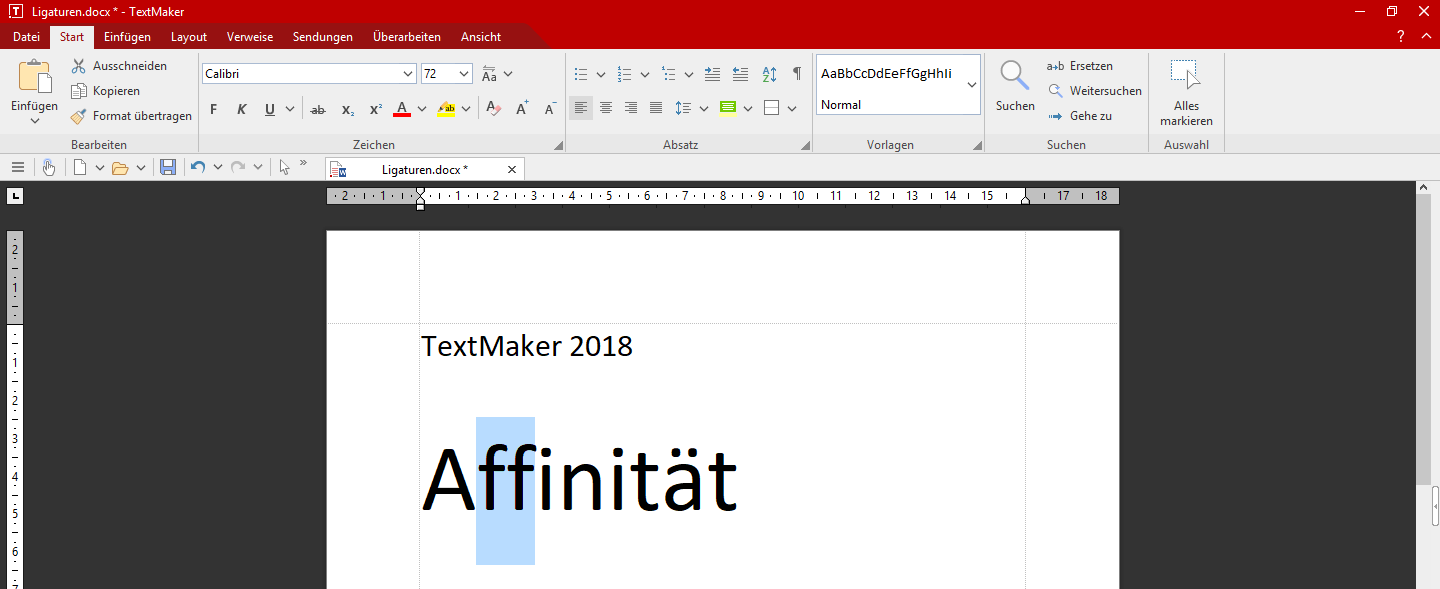 Wenn ich mit Word 2010 Starter Ligaturen setze, das Dokument als .docx speichere und mit TM 2018 öffne, gehen eben diese Ligaturen dort verloren.