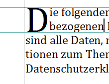 Ich habe das Gefühl, die Initiale bei Textmaker sind immer zu tief. Niemals stehen sie unten auf der Linie der dritten Zeile - sondern immer etwas zu tief.