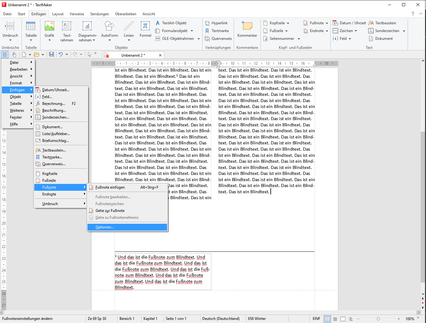also, bei mir werden die Fußnoten genau so formatiert wie der Bereich darüber. Ich finde keine Bereichseinstellung, mit der ich TextMaker dazu bewegen könnte, die Fußnoten anders zu behandeln.