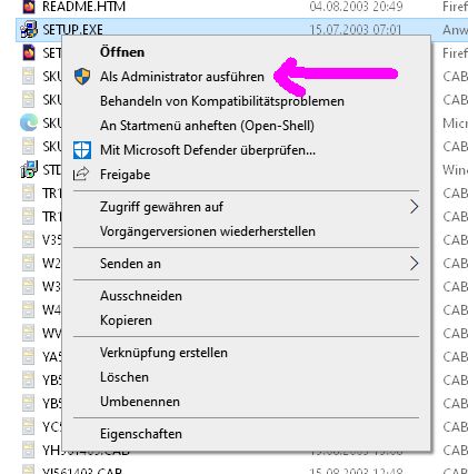 Rechtsklick auf die fragliche Setup Datei, im erscheinenden Menue die markierte Option auswählen, uU die UAC Abrage ausfüllen, aufsetzen.