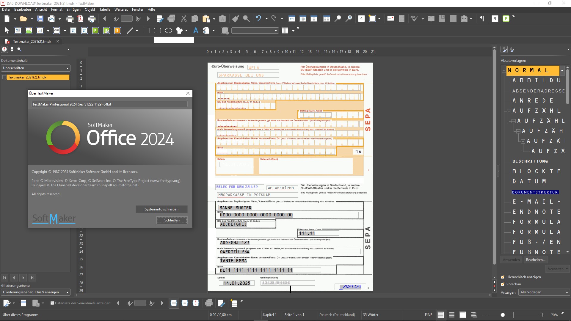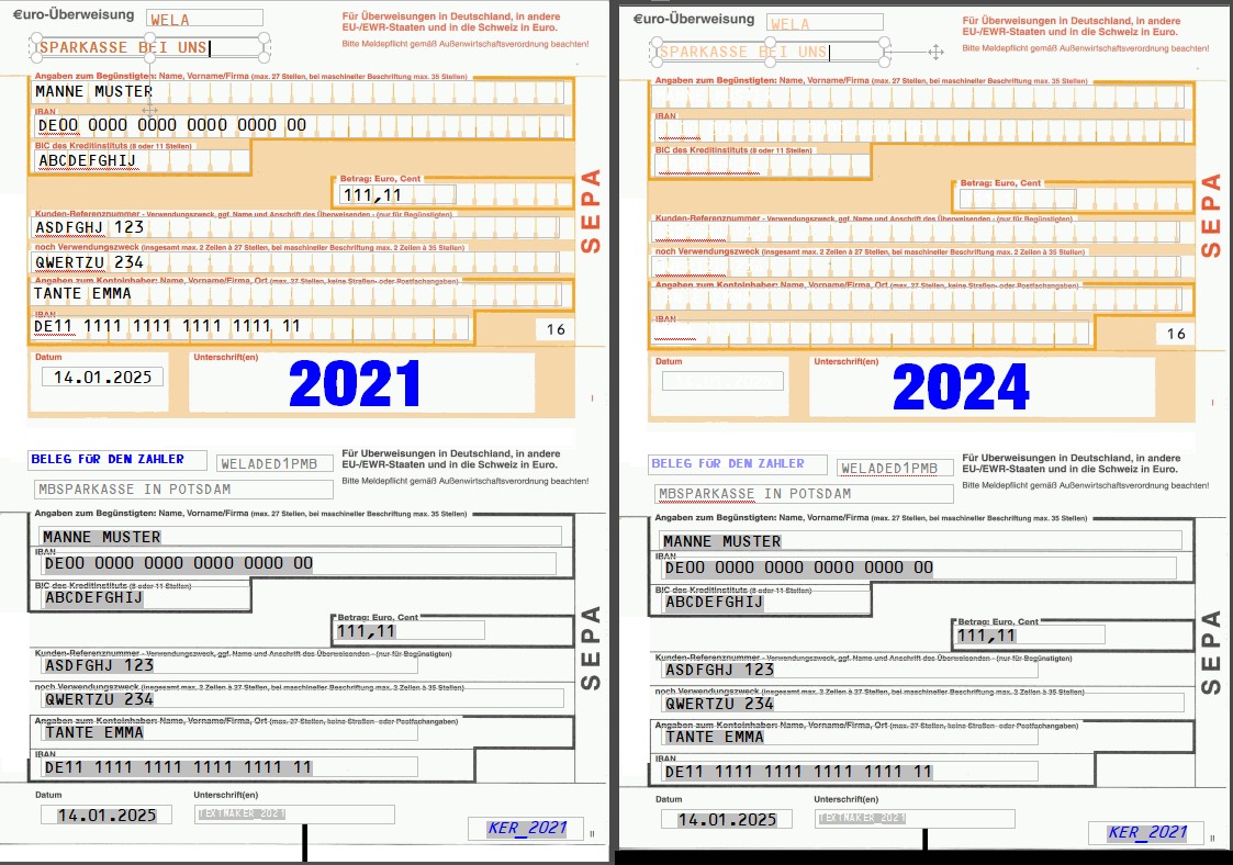 Im Textmaker 2021 habe ich seit Jahren ein SEPA-Überweisungs-Formular entworfen und ohne Probleme in Nutzung.
